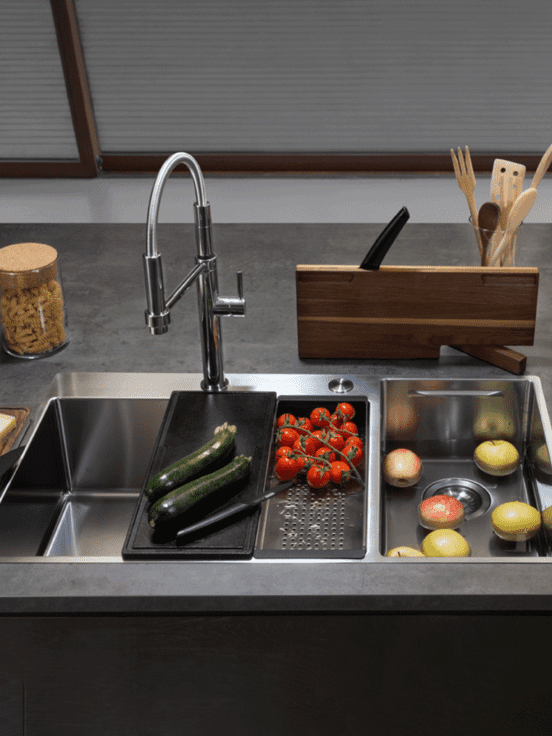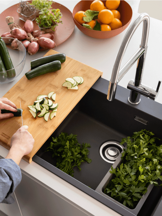 Alakítsd át a mosogatót egy gyönyörű munkaterületté egyedi vágódeszkákkal, kiegészítőkkel és szűrőkkel. A Franke konyhai kiegészítők jól megtervezettek és kiváló minőségű funkcionalitással rendelkeznek. Egy ilyen tökéletesen működő munkakörnyezetben az előkészítés, a felszolgálás és még az azt követő takarítás is tiszta élménnyé válik.