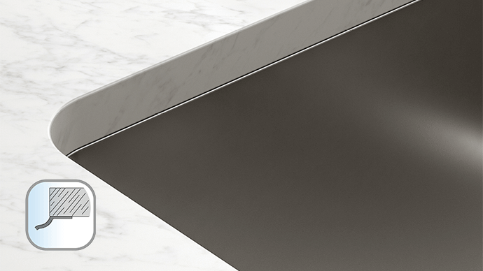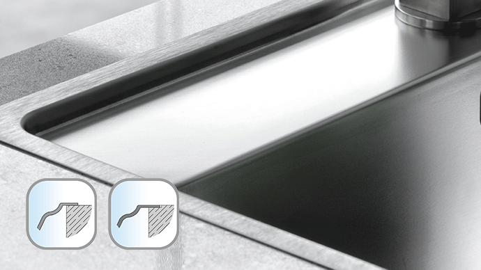 Egyszerű és modern megoldás. Az igazított és félig igazított telepítés és a Fast Fix rögzítőrendszer lehetővé teszi a Franke konyhai mosogatók számára, hogy tökéletesen alkalmazkodjanak a munkalaphoz és a konyhai kialakításhoz. A vékony tető széle 1 mm vastag.