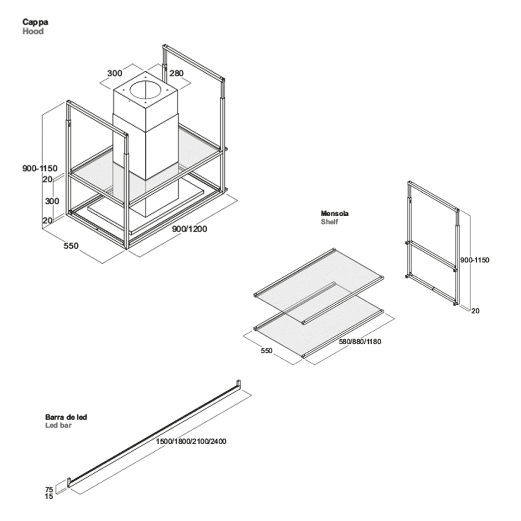 A polcok nem részei a páraelszívónak |